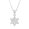 An elegant and delicate Star of David diamond pendant with smooth lines, set with 13 diamonds weighing 0.22 carats. A Star of David pendant set with diamonds that create a uniform shiny surface.