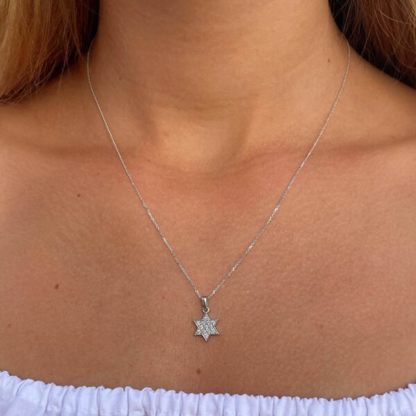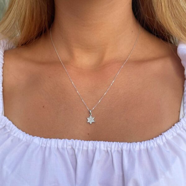 A Star of David pendant with medium size diamonds is suitable for women of all ages to wear on the neck on a daily basis.
