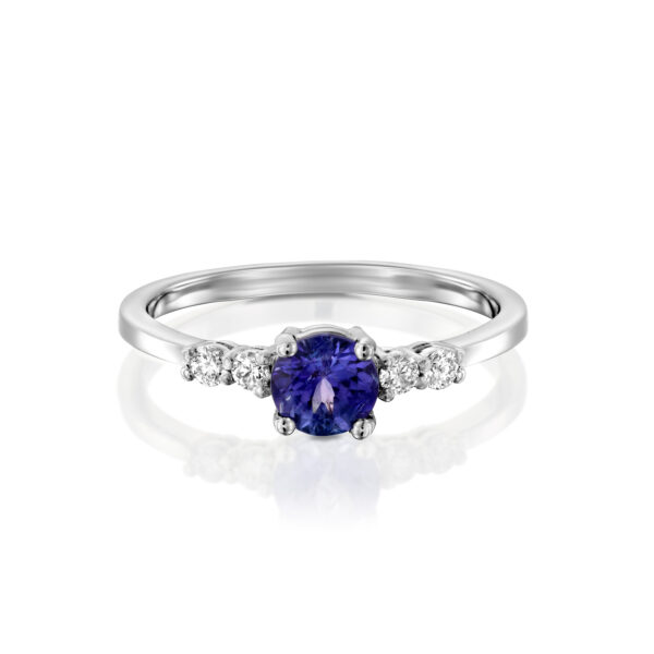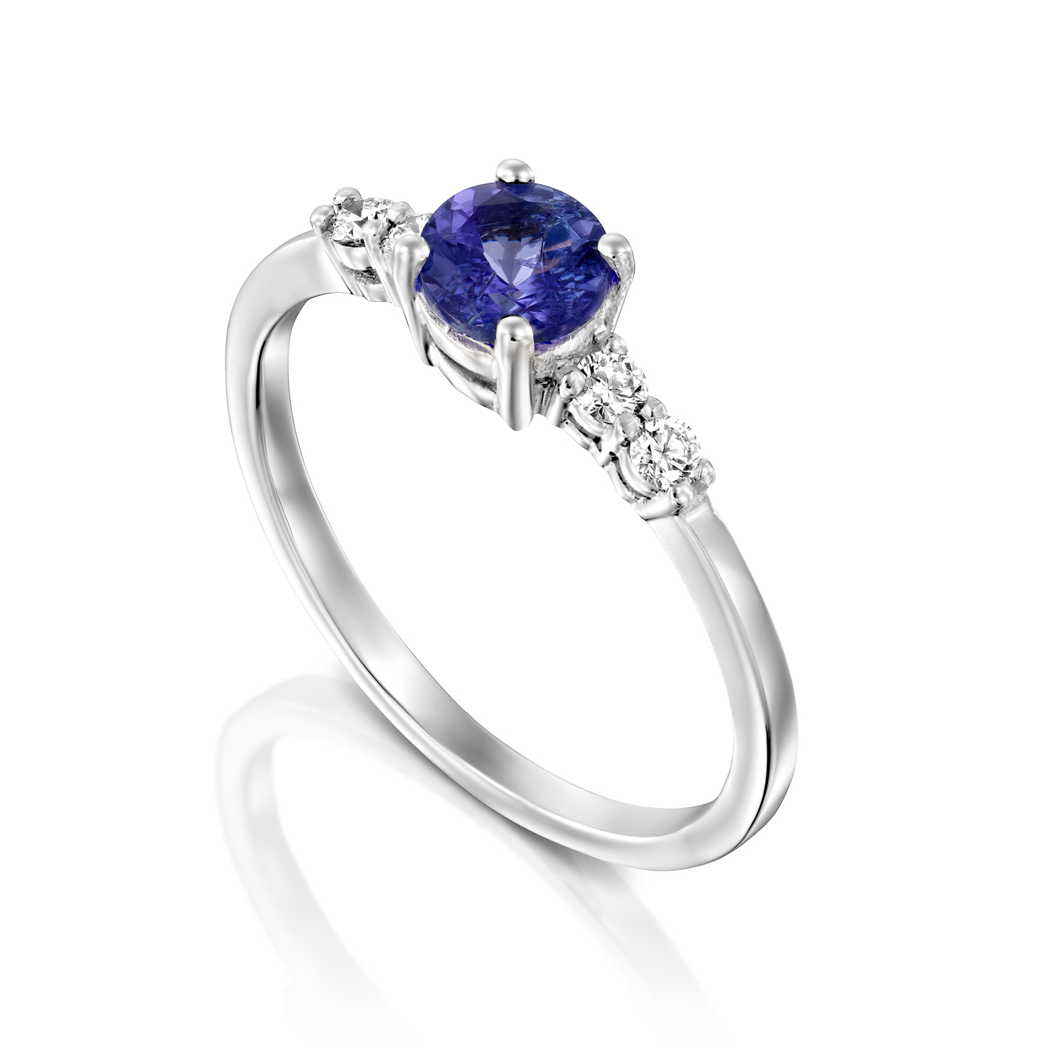 A tanzanite engagement ring. alternative engagement ring with a beautiful round purple-blue tanzanite and dazzling diamonds.