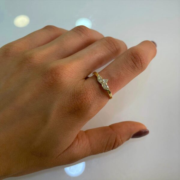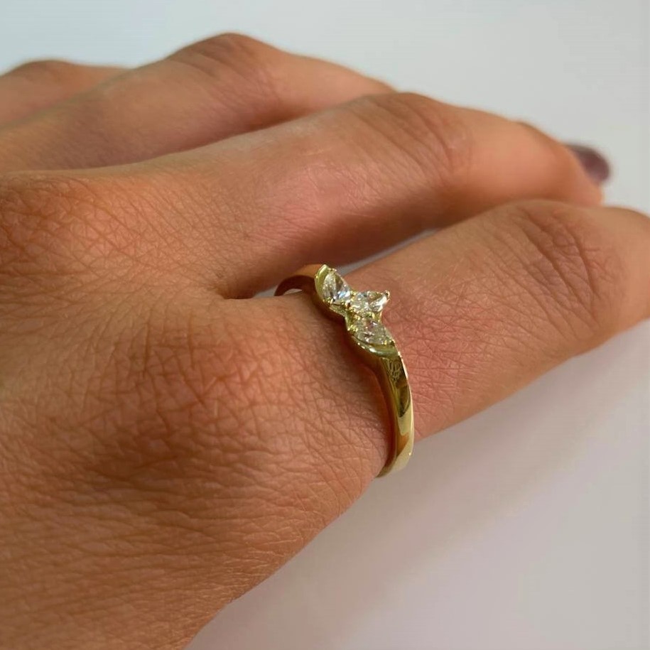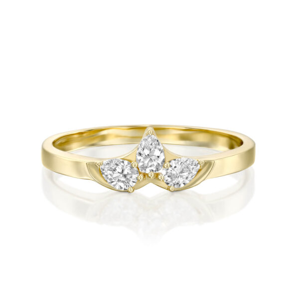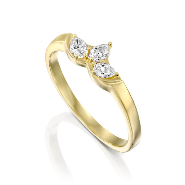 A stylish and fashionable diamond ring set with 3 sparkling diamonds in the shape of a pear weighing 0.30 carats in total. A pear shape diamond ring with an extraordinary presence, but still maintains a clean and solid look.
