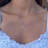 An elegant and delicate diamond pendant, with a presence, features a 3 sparkling diamonds side by side, 0.10ct diamond. The design of the pendant is designed to give maximum exposure of light to the diamond. Total diamonds 0.30ct.