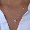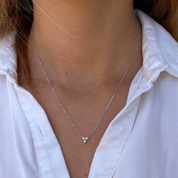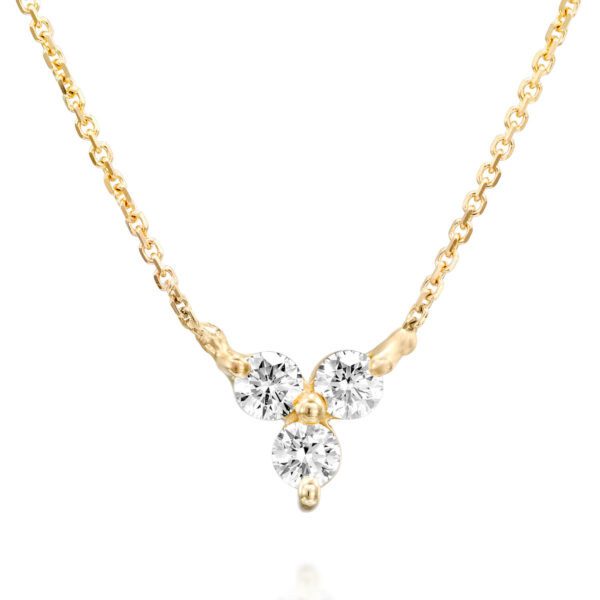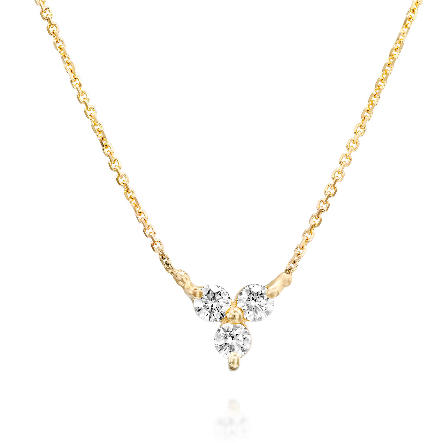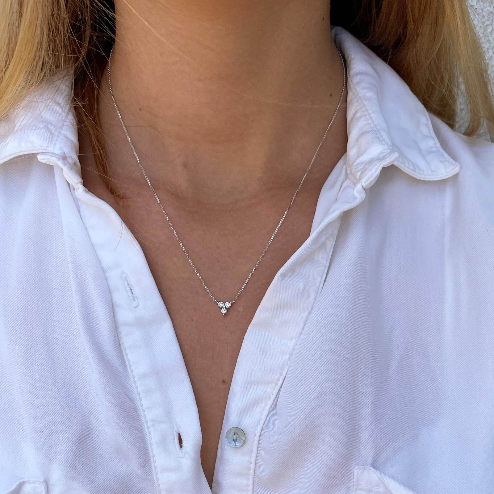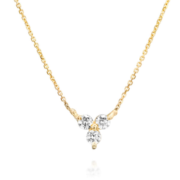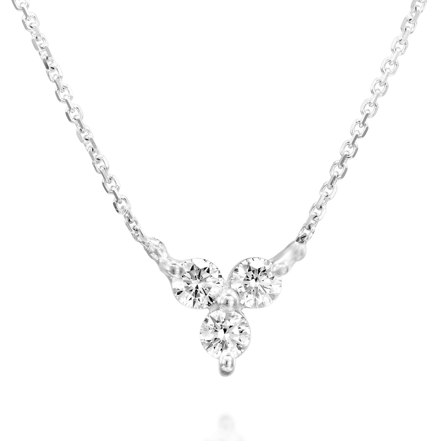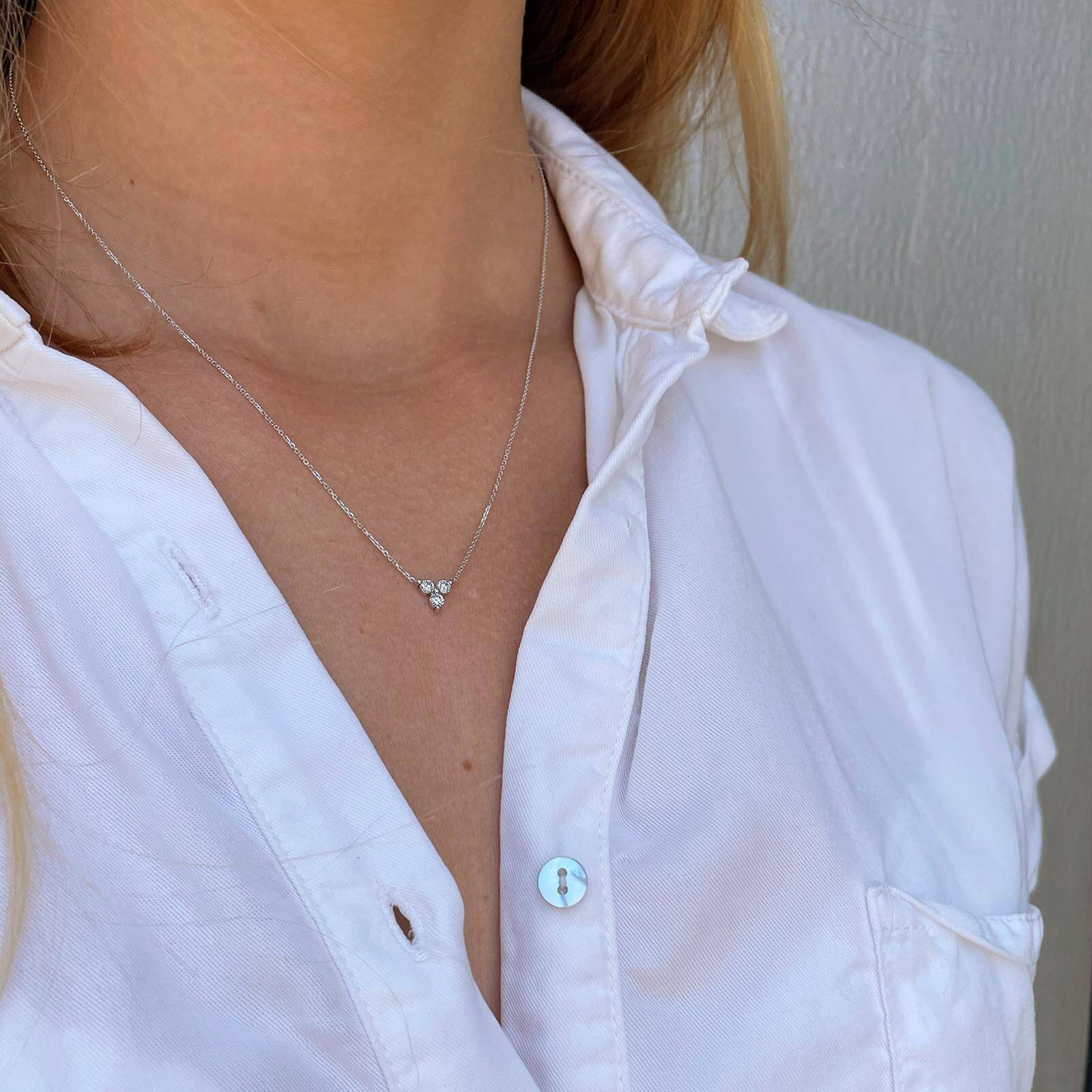 A delicate and sophisticated diamond necklace designed with as a triangular clover set with 3 glittering diamonds weighing 0.21 carats total.