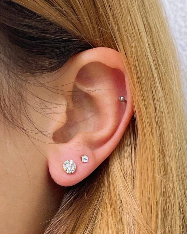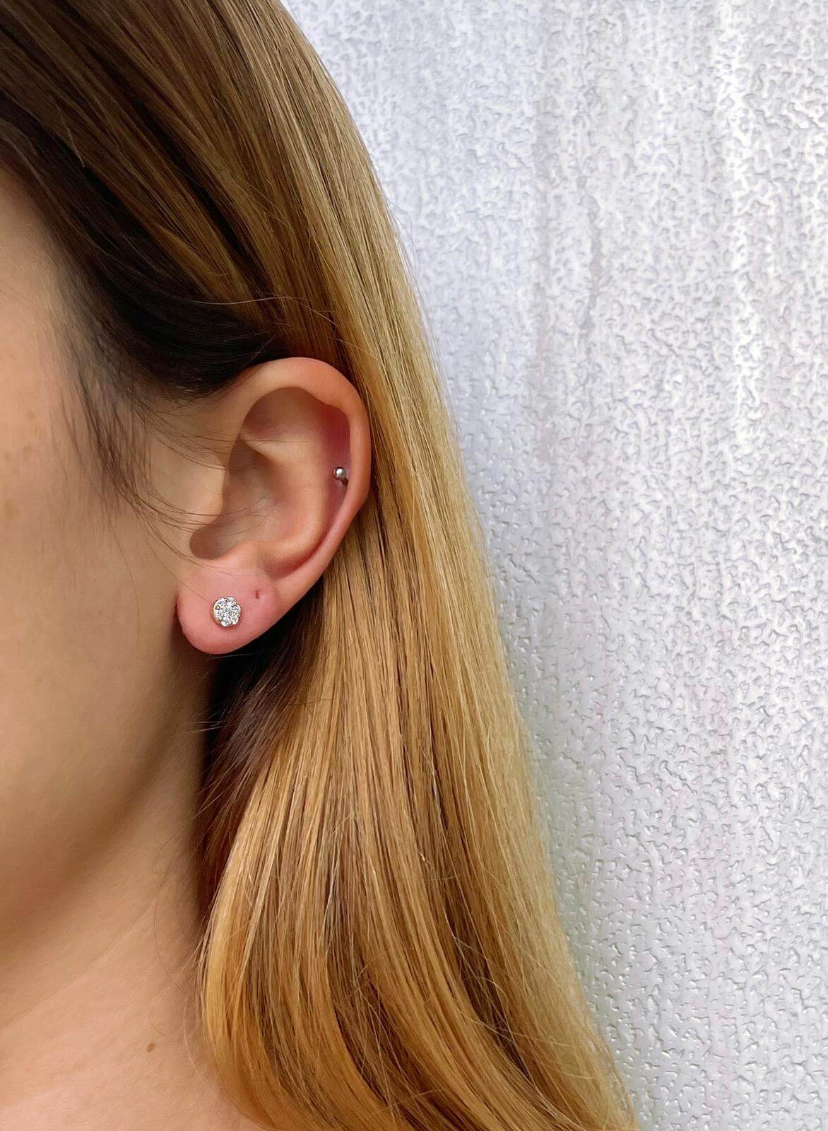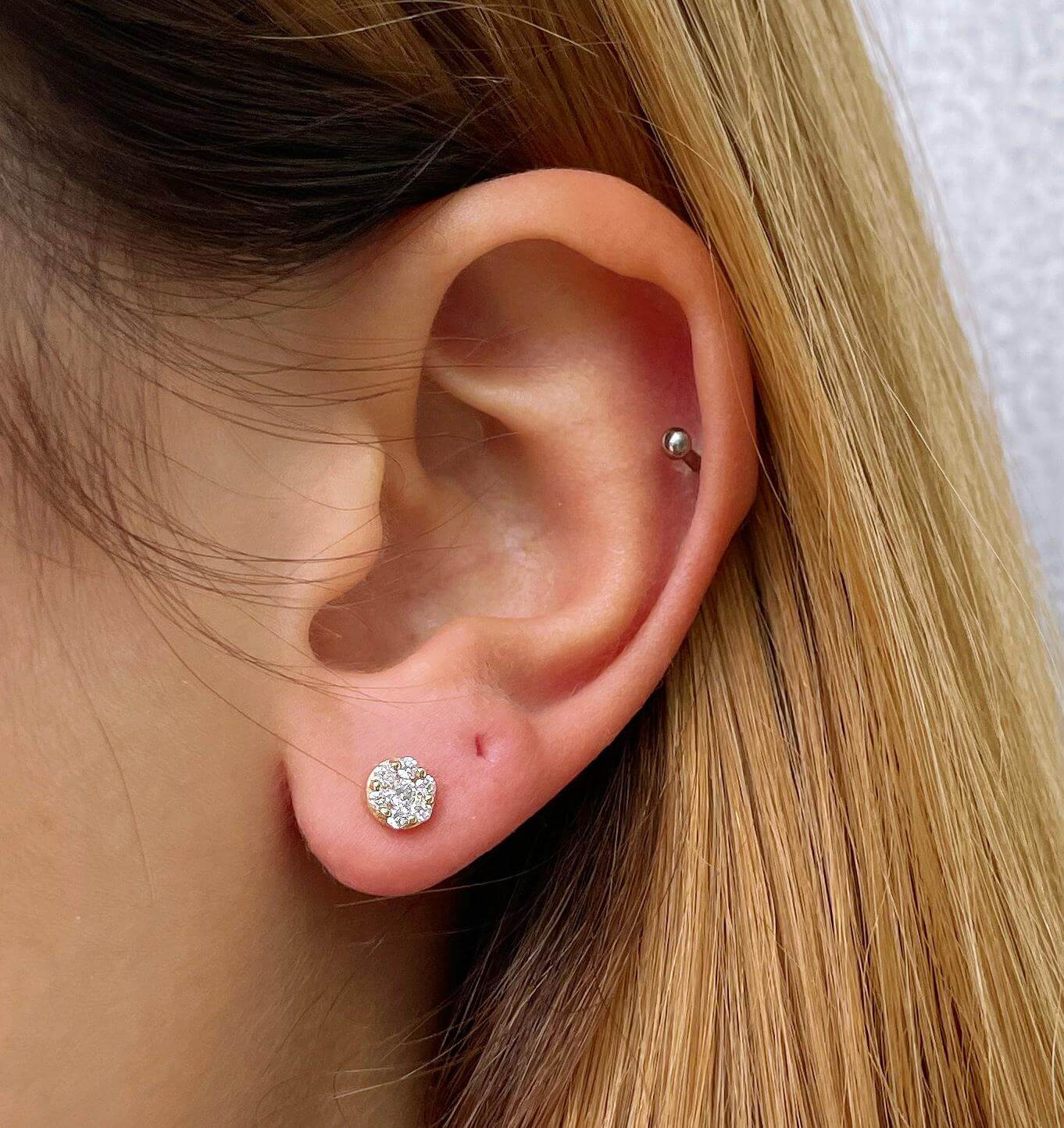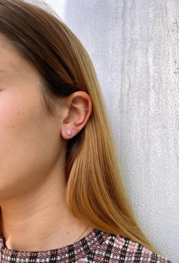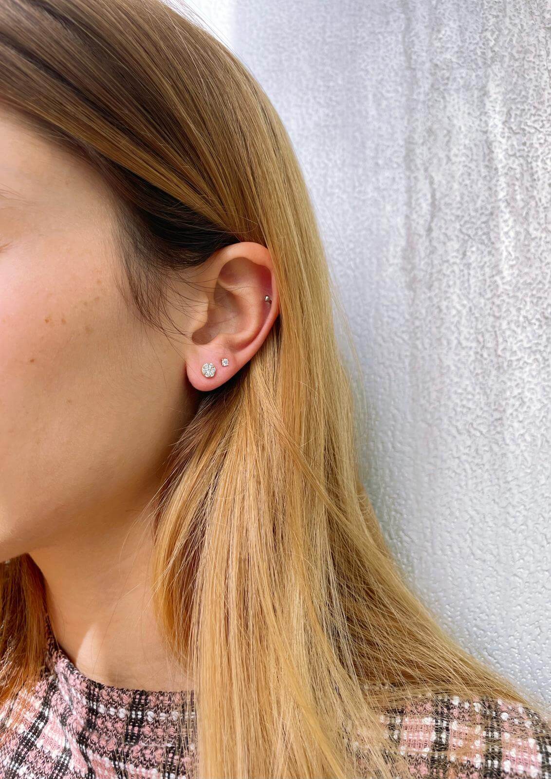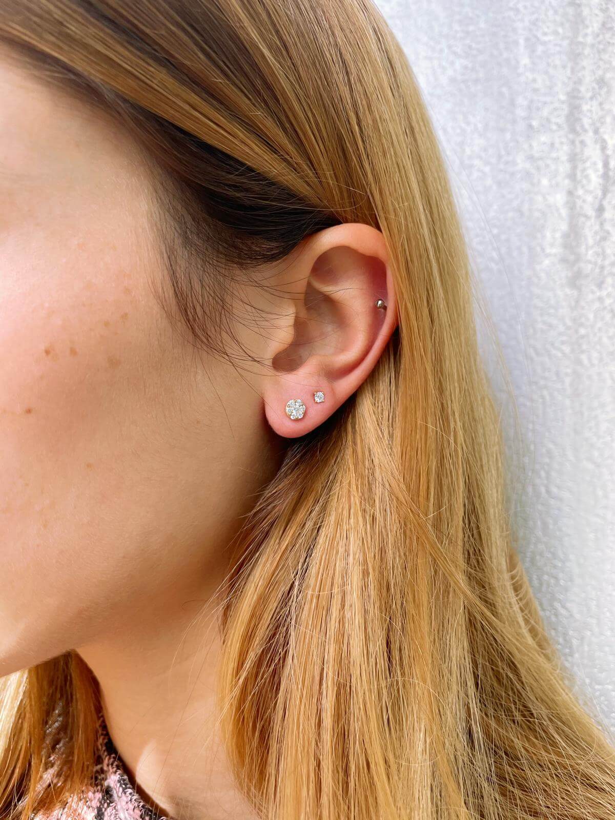 Diamond flower stud earrings. Diamond stud earrings with invisible prongs between the diamond, that make it look like one big diamond.