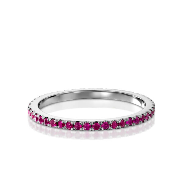 A fashionable eternity ring set with red ruby weighing 0.32 carats. A stylish ring designed for those who like the red color, beautiful and delicate jewelry for every day.
