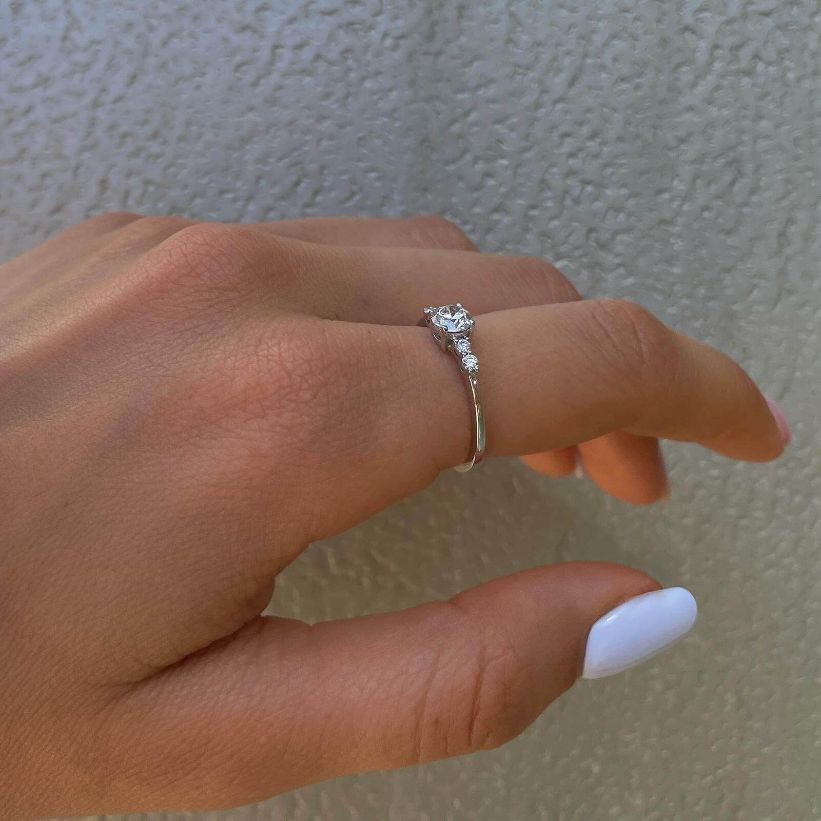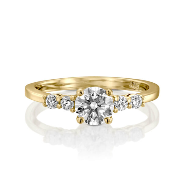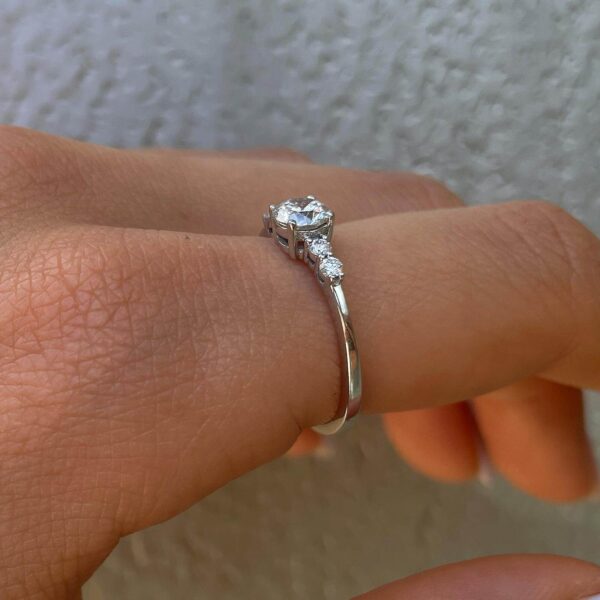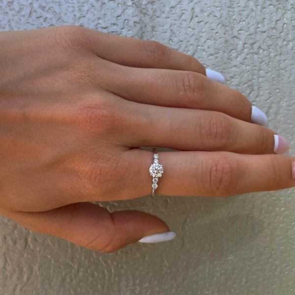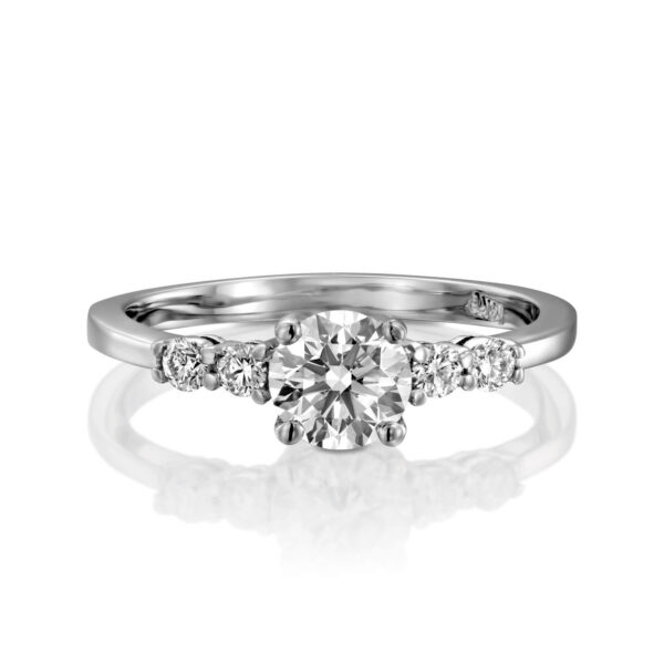 Delicate and elegant designed ring features 0.50ct sparkling diamond and 4 collection round diamonds.