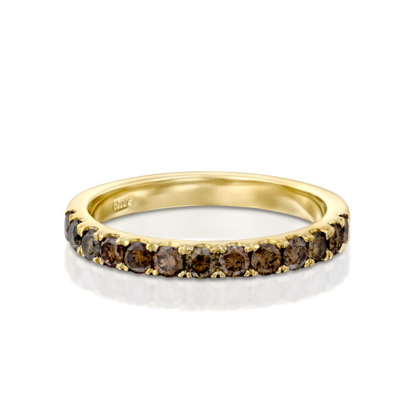 Elegant and unique diamond row ring set with 13 brown diamonds weighing 0.52 carats total. A classic diamond ring with diamonds of a special cognac color.