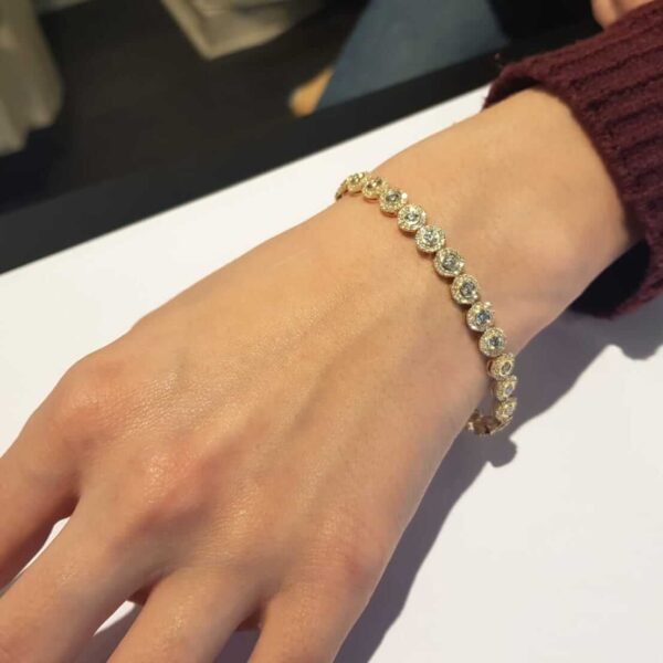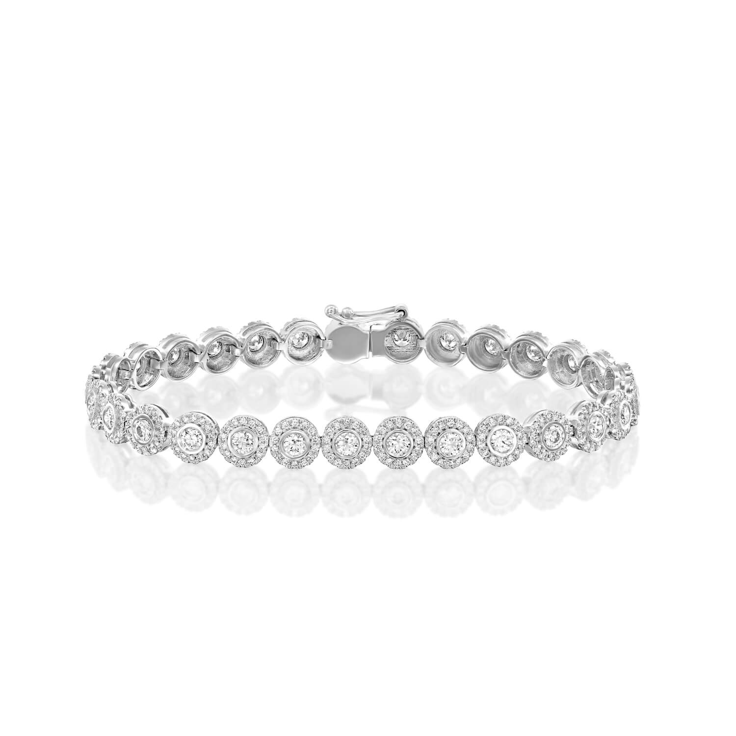 An impressive and prestigious diamond bracelet set with 406 diamonds with a total weight of 4.00 carats. A special diamond bracelet with an elegant design and an presence that can not be ignored, set with a large diamond in the center and small diamonds around it. Total 4 carat diamonds