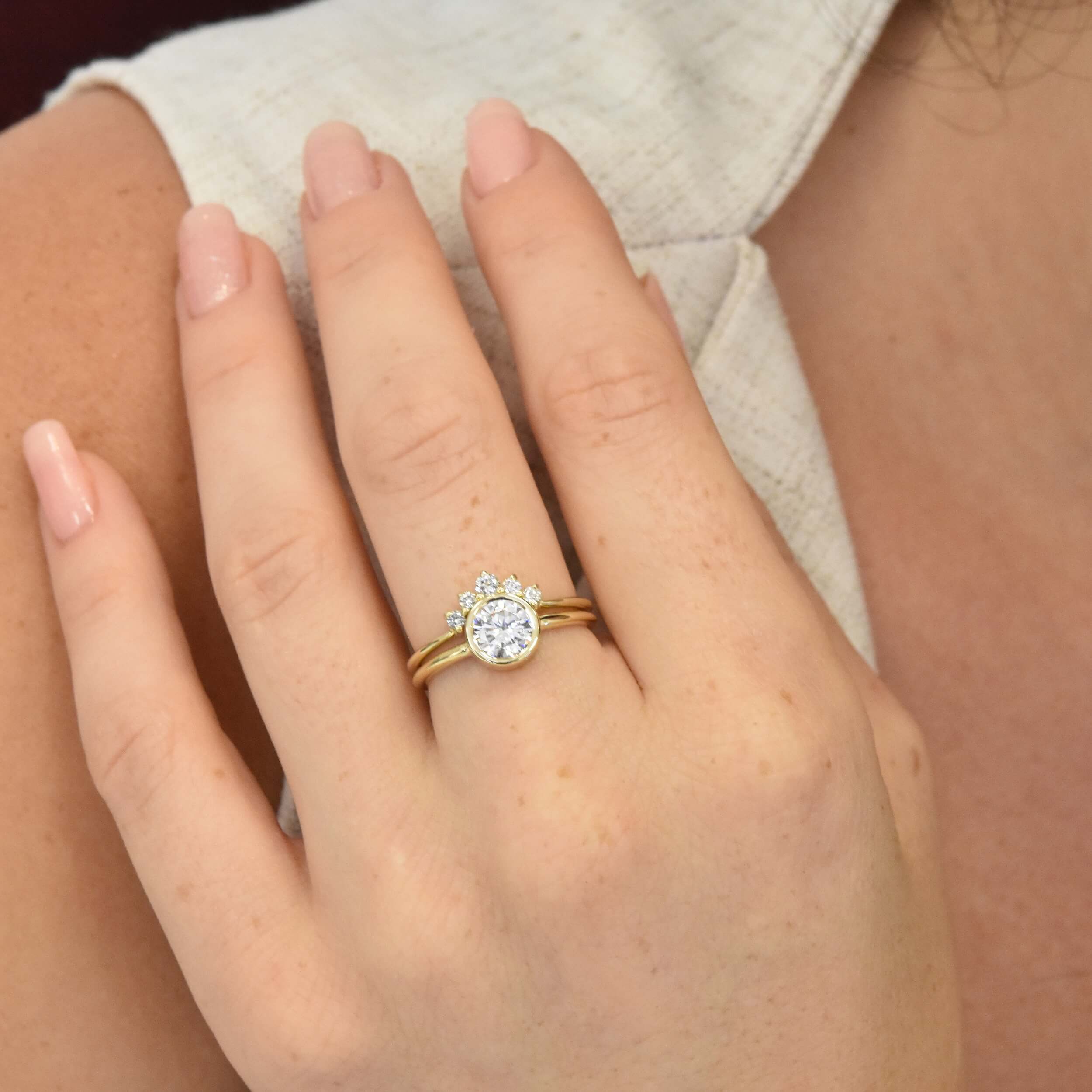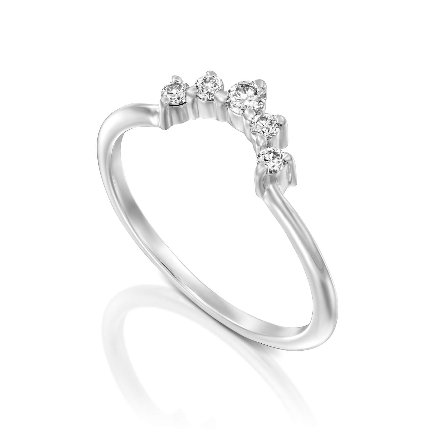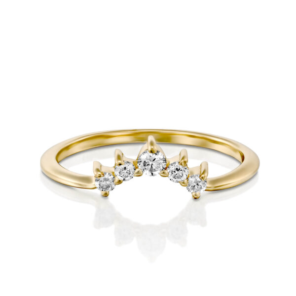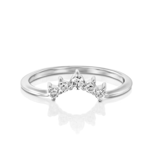 A fashionable and delicate crown diamond ring set with 5 high quality diamonds weighing 0.19 carats. Designed diamond ring that can be worn alone on your finger or pinned to an engagement ring.