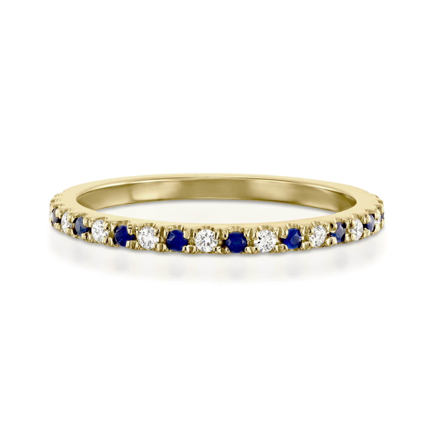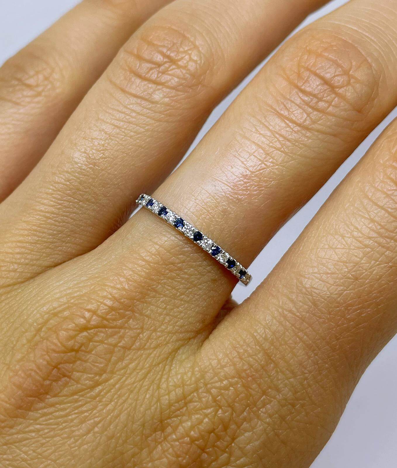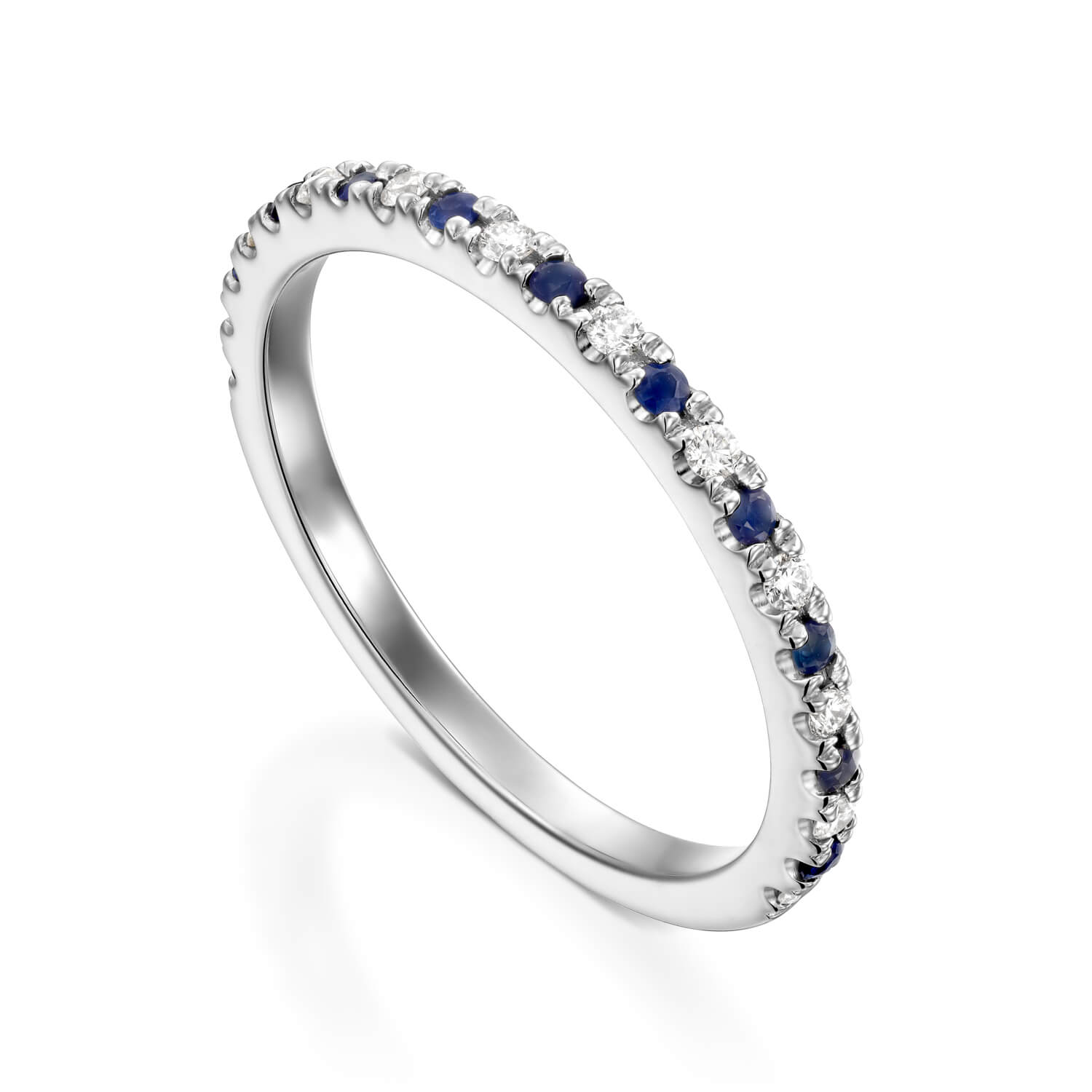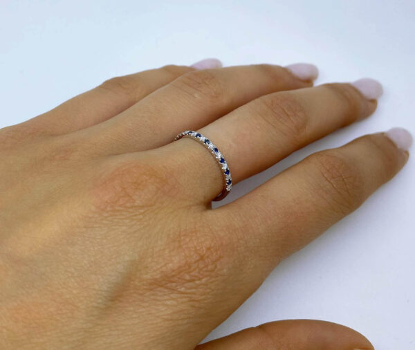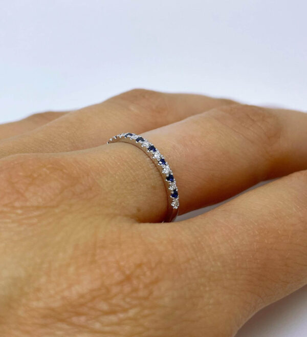 Sapphire Diamond wedding ring. Classic colorful half eternity ring.