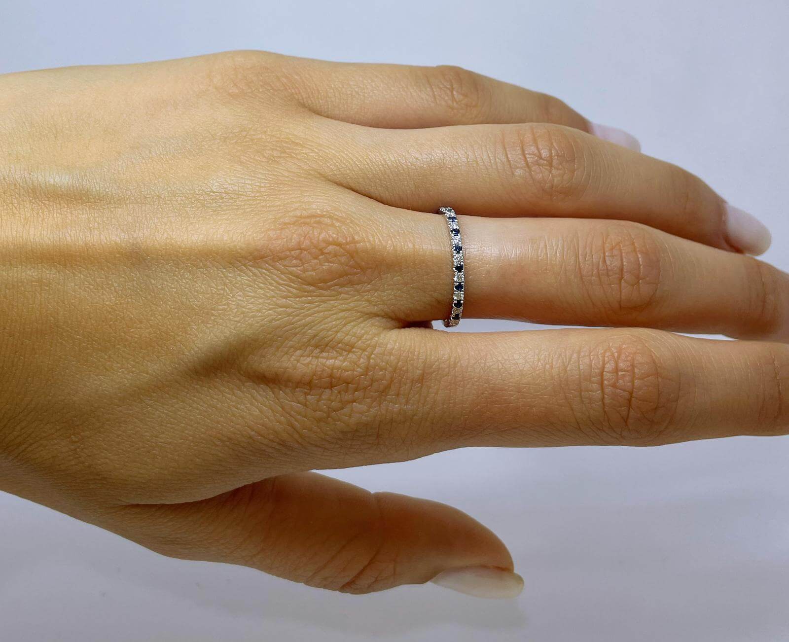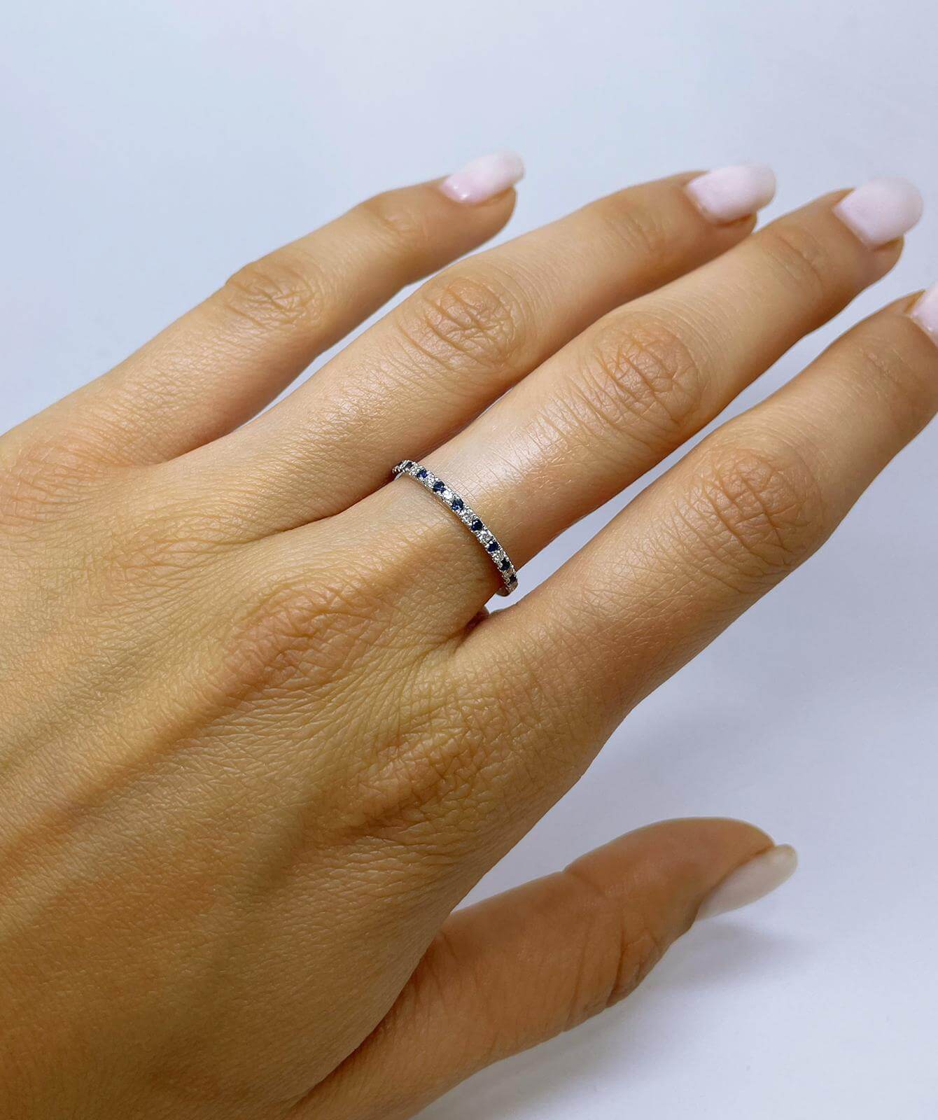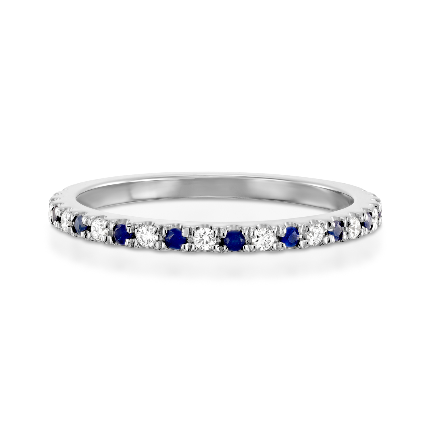 Sapphire Diamond wedding ring. Classic colorful half eternity ring.