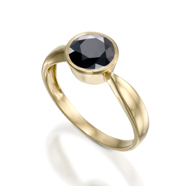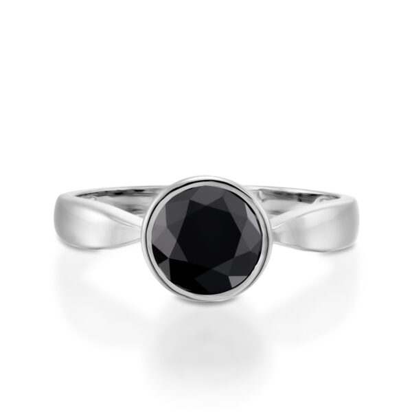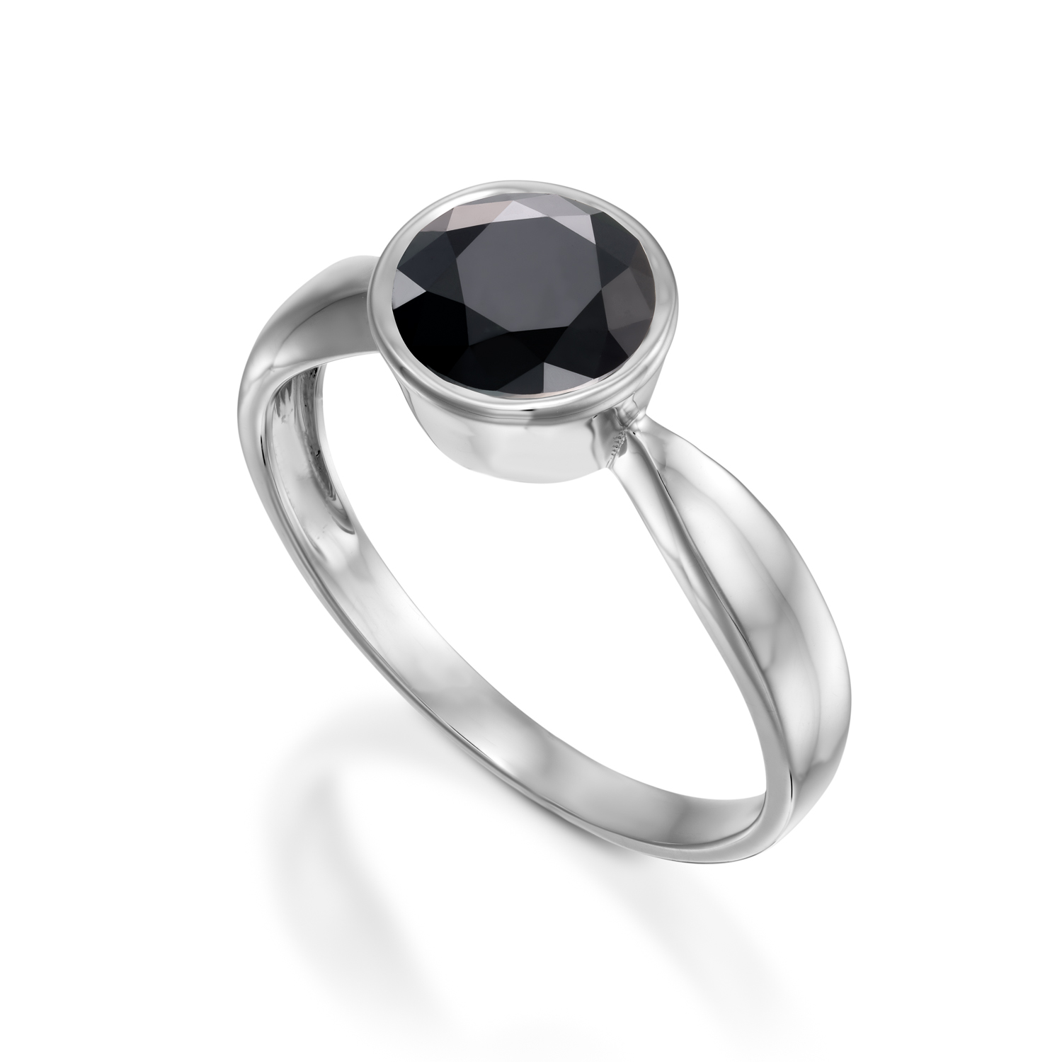 A modern diamond ring with subtle design features a 1.50ct black diamond in the center.